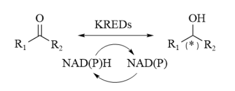【概要描述】酮还原酶(Ketoreductase, KRED)又称为羰基还原酶,是能够催化醛/酮与醇之间可逆地进行氧化还原反应的酶类,并且需要NAD(H)或NADP(H)等辅酶作为氢传递体。